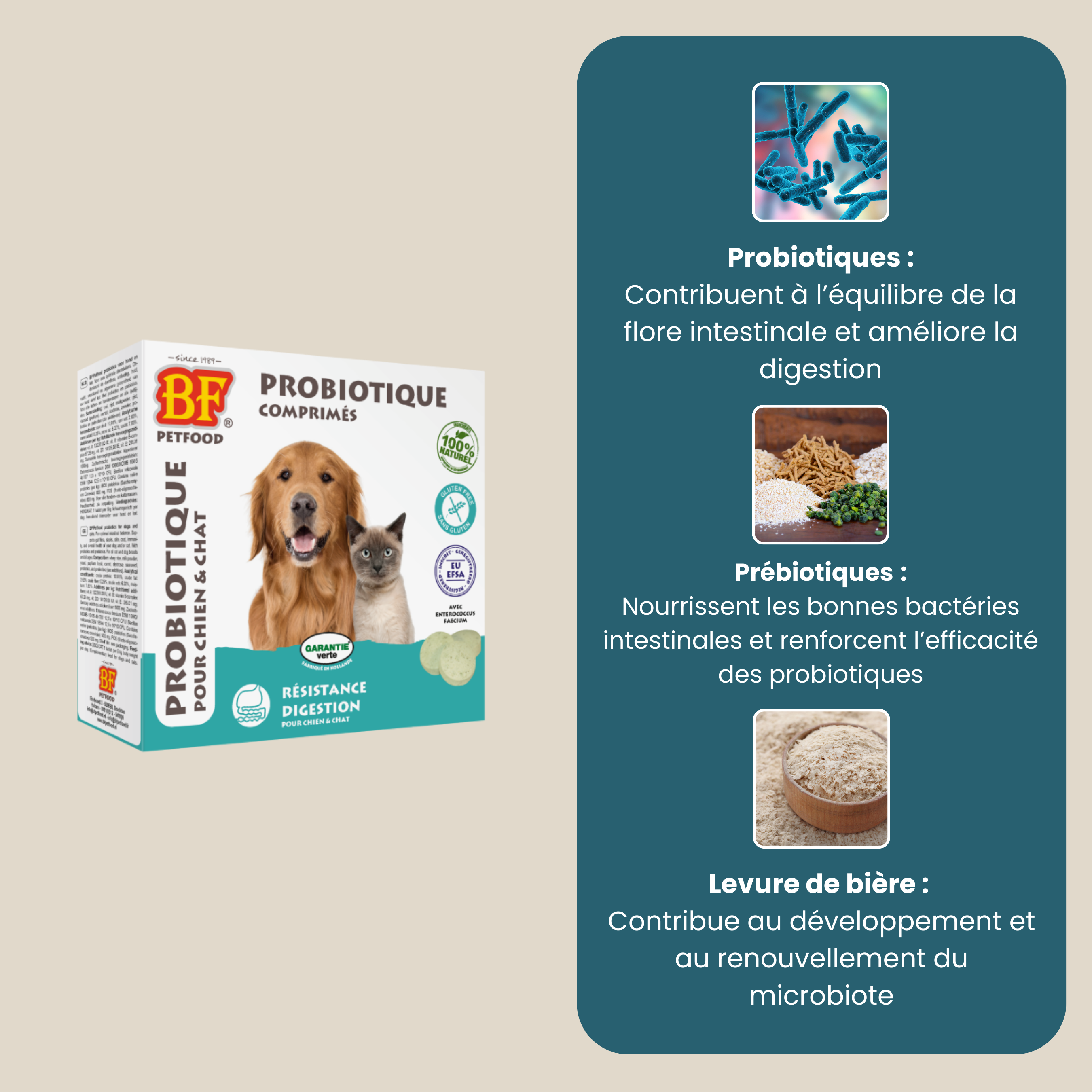 Les comprimés Probiotiques BF Petfood soutiennent l’équilibre intestinal, renforcent les défenses naturelles et améliorent le bien-être au quotidien.