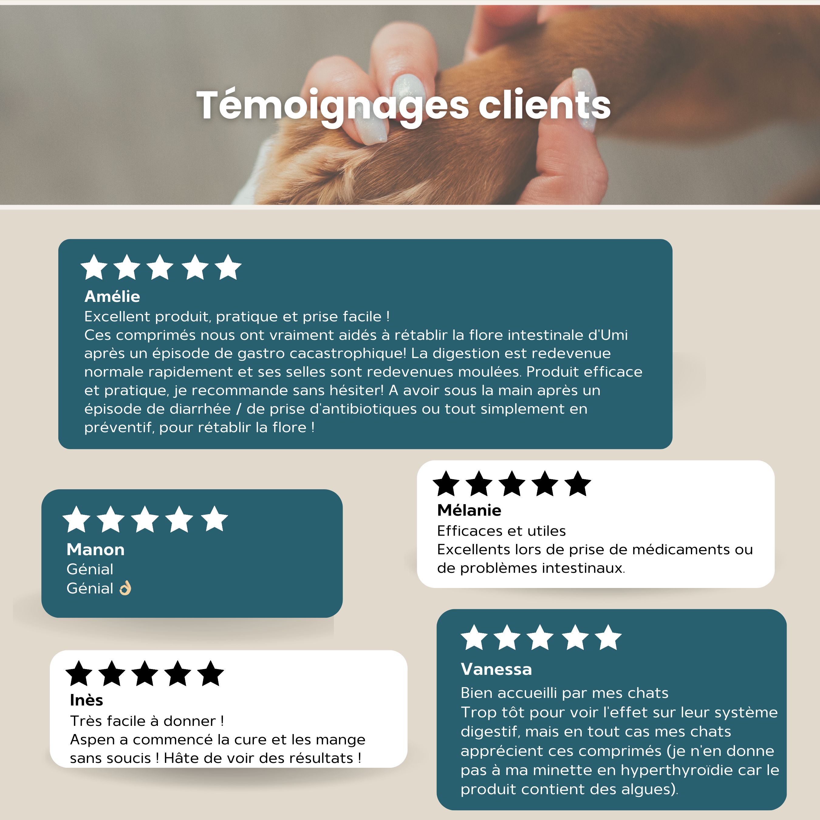 Nos comprimés associent probiotiques, prébiotiques et ingrédients naturels pour soutenir la digestion et le bien-être intestinal des chiens et des chats.