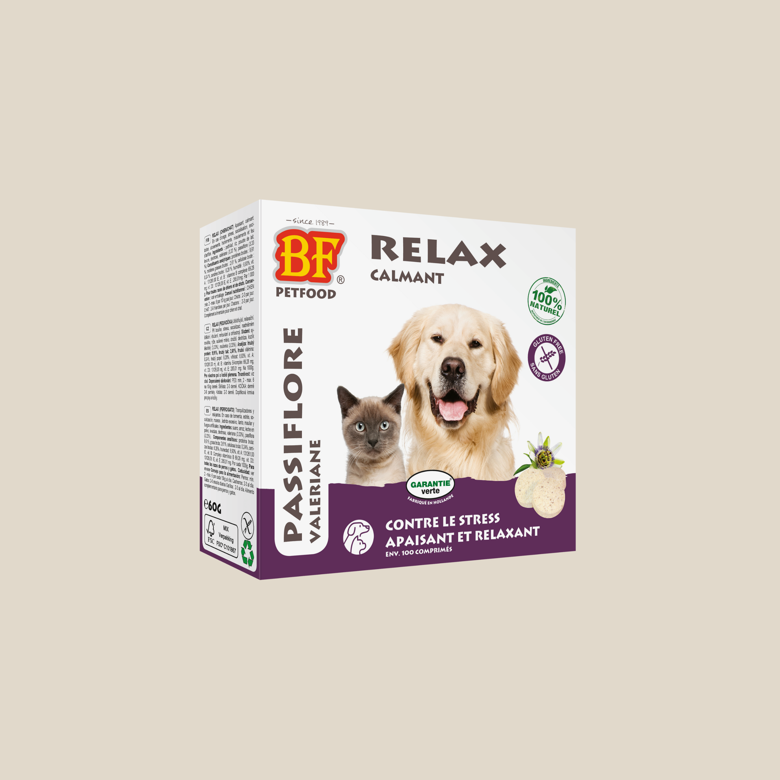 Chez BF®Petfood, la qualité des ingrédients est une priorité absolue. Le complément Relax est composé d’un mélange d’ingrédients d’origine naturelle, reconnus pour leurs effets calmants. La valériane et la passiflore, deux plantes réputées pour leur action apaisante sur le système nerveux, contribuent à réduire le stress et à favoriser la détente chez les animaux.