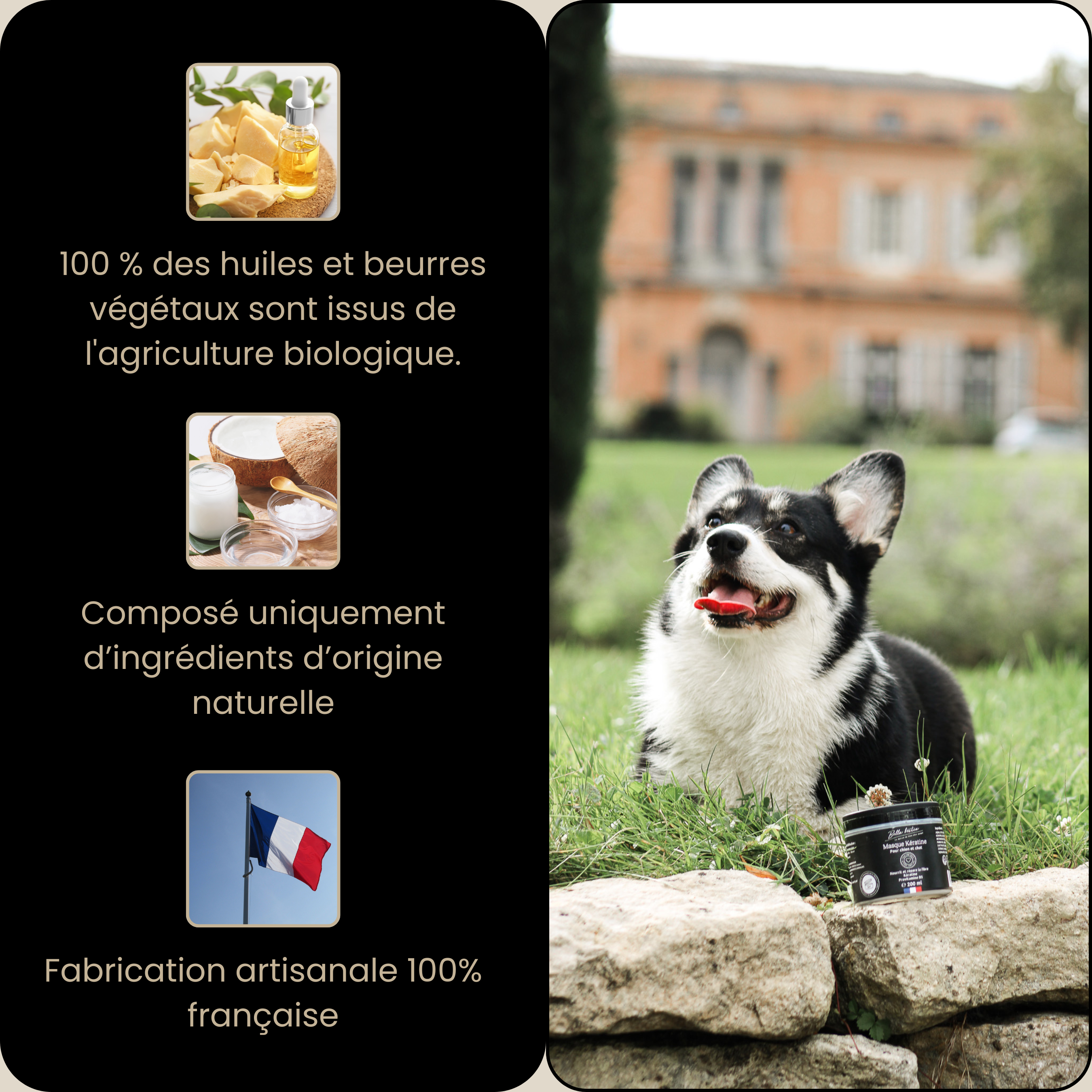 Naast deze voordelen heeft het Bella Bestia-masker een lichte, frisse geur die een aangename geur op de vacht achterlaat. Bovendien is het samengesteld zonder synthetische ingrediënten, voor een verzorging die het natuurlijke evenwicht van de huid respecteert.